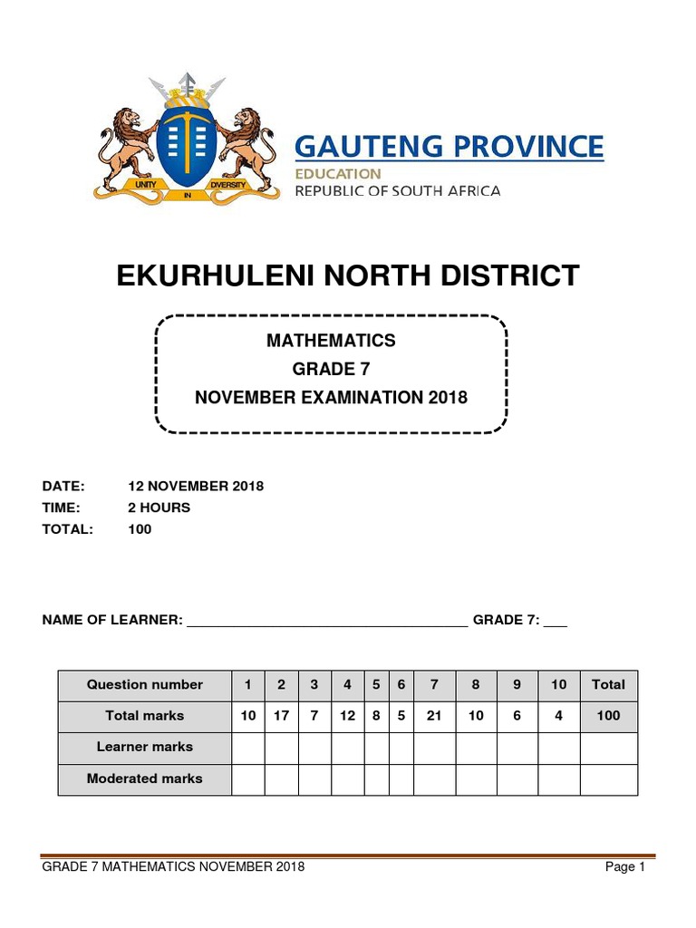 Grade 8 Maths November Exam Papers 2018 Pdf