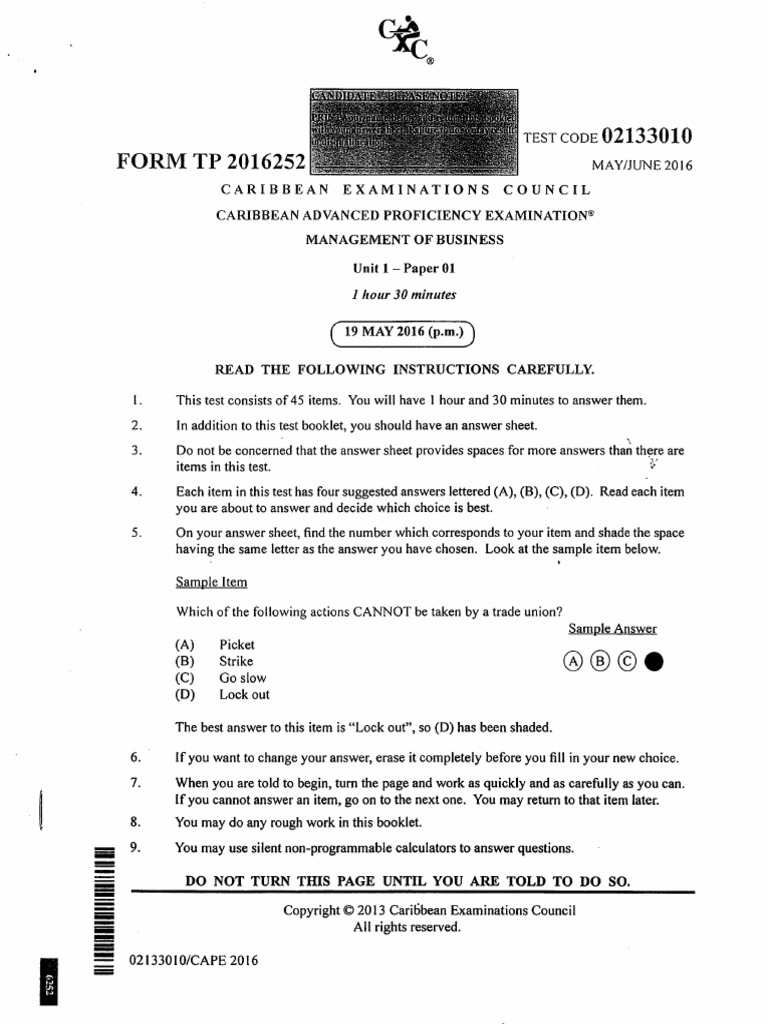 Cape biology unit 1 past paper 2016 Author. 12 Answers to end-of-chapter questions 1 B 1 2 A 1 3 C 1 4 B 1 5 B 1 6 A 1 7 A 1 8 B 1 9 A 1 10 C 1 11 A 1 Structured questions 12 a i Characterised by a large fluid-filled antrum Secondary oocyte pushed to one side Thin layer of theca cells granulosa cells on the periphery The corona radiata surrounds the oocyte. Mathematics May 2005 answer sheet.